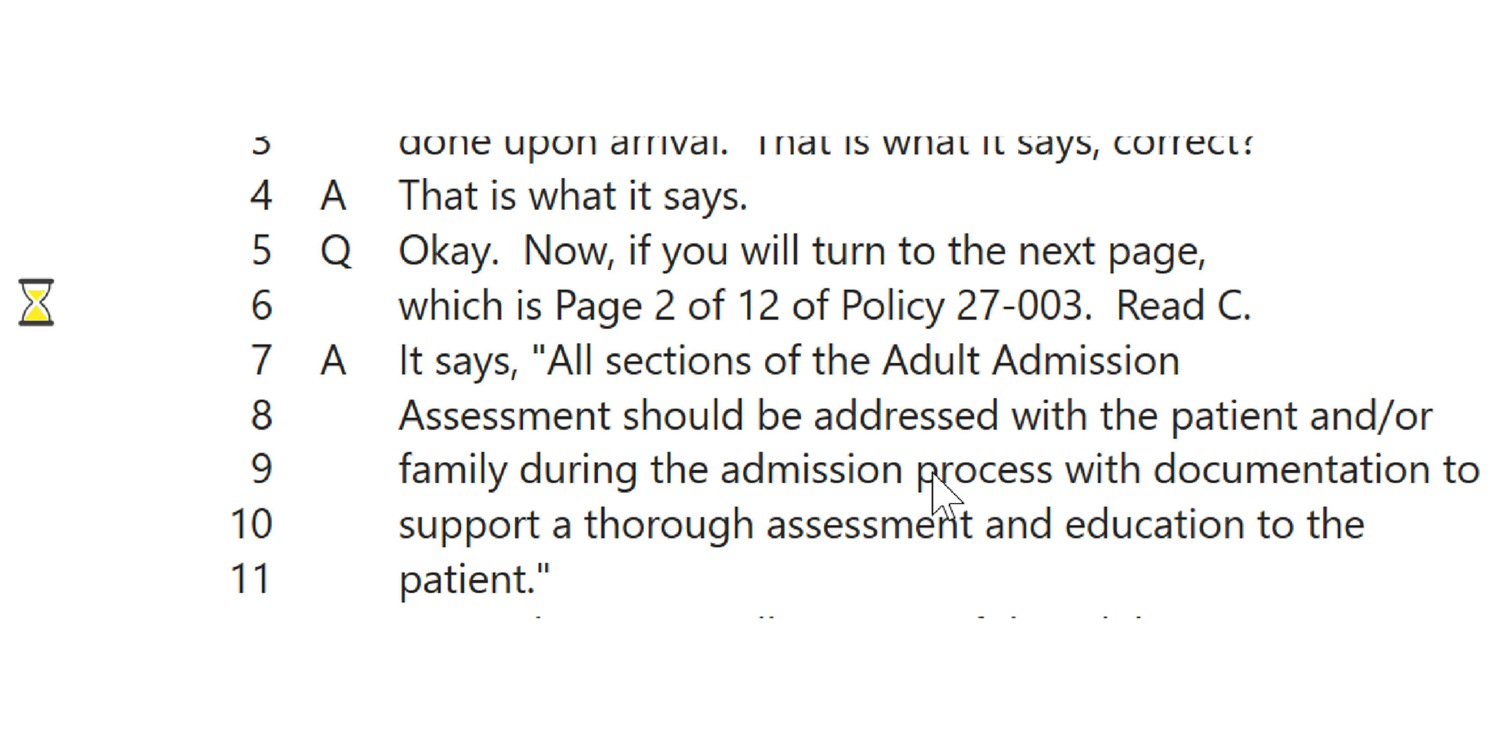 On the left of the transcript text you may notice an occasional hourglass.