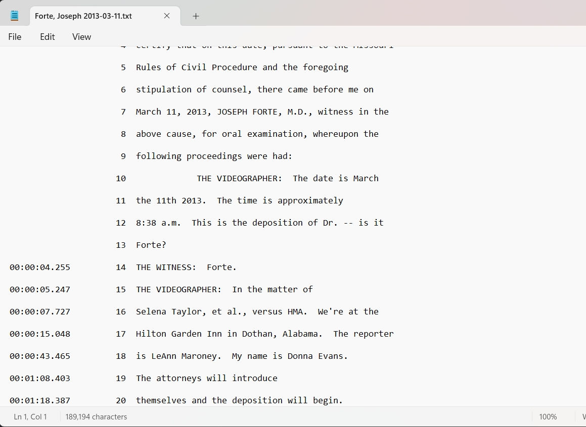 However, only the MDB file contains the proper formatting and time code necessary to match the text to the video. When it comes to playing deposition video with the scrolling text, creating and tuning video clips, or creating reports, only the MDB version of the transcript can be used.