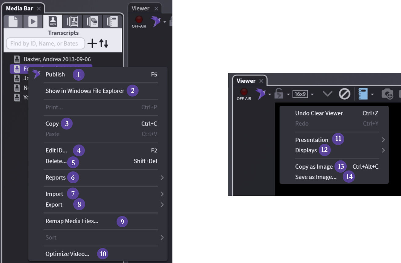 Right-clicking a transcript and in the Viewer: